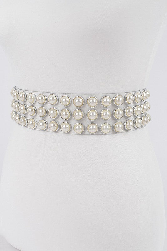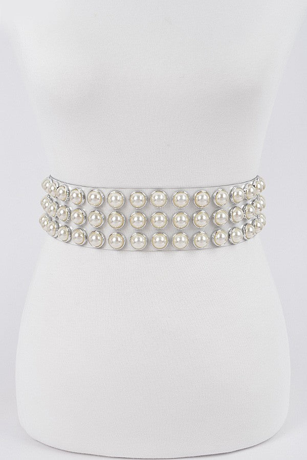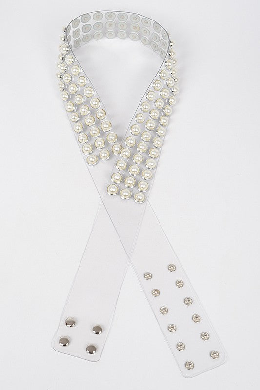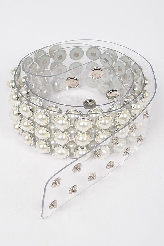Pearl Studded Clear Waist Belt