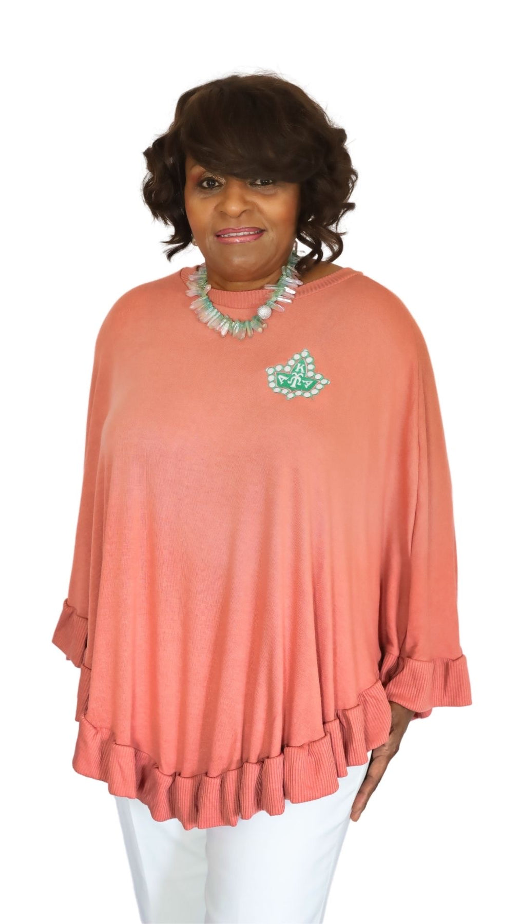 PRETTY RUFFLE HEM PONCHO SWEATER