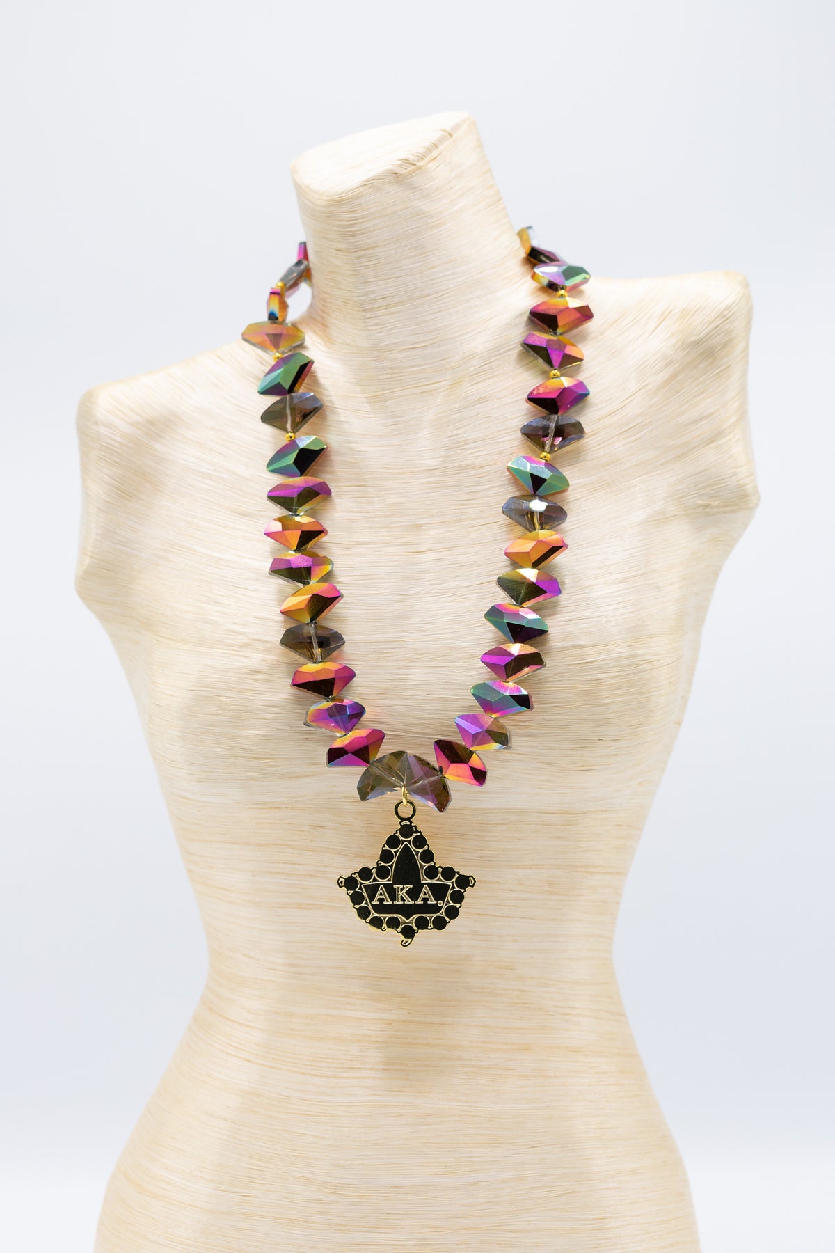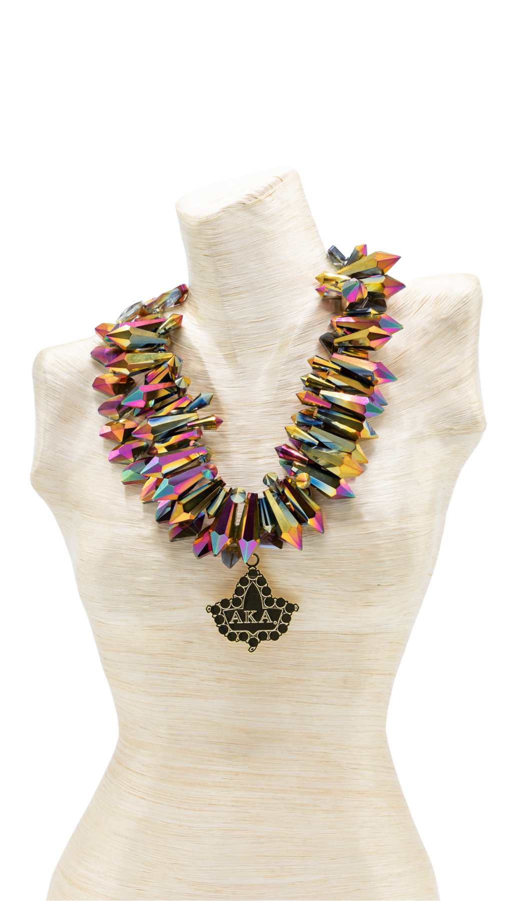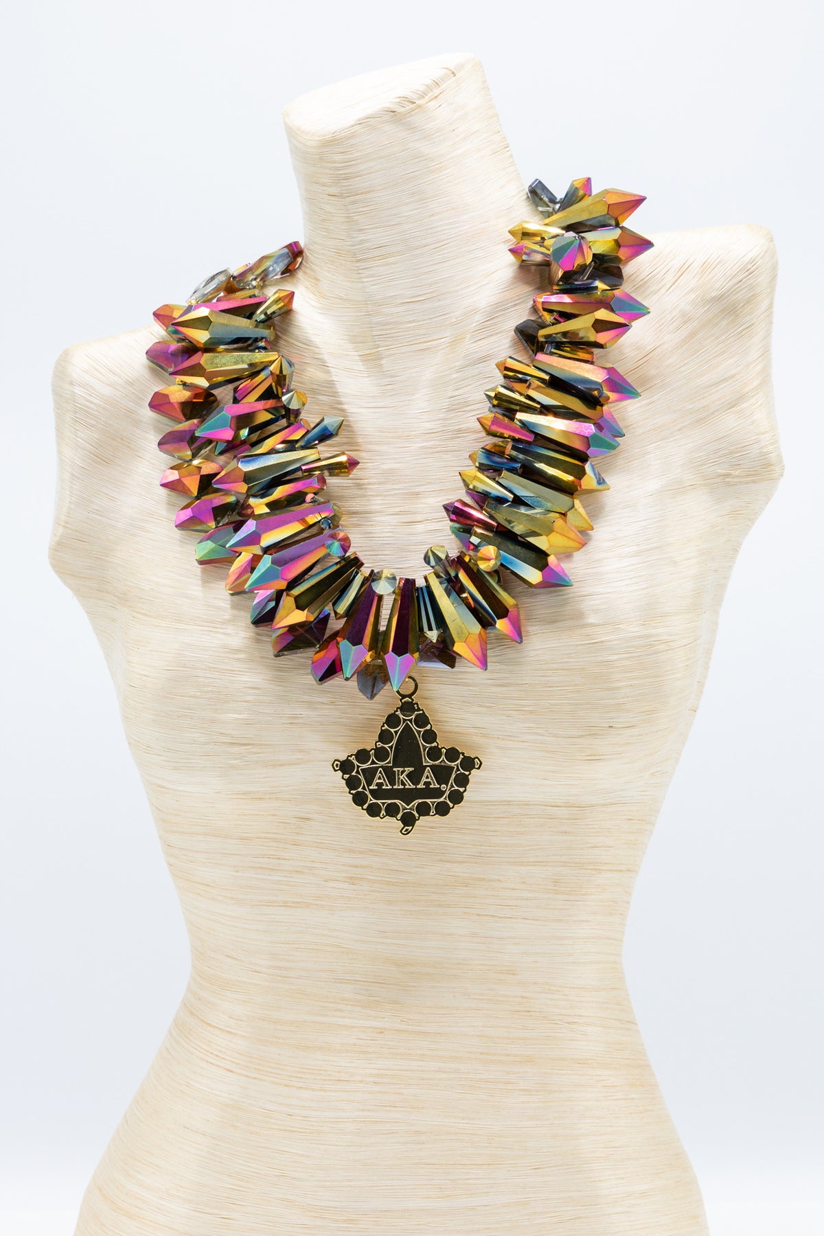 Electroplated Crystal one necklace with pendant and one strand necklace. To be worn together or separately.