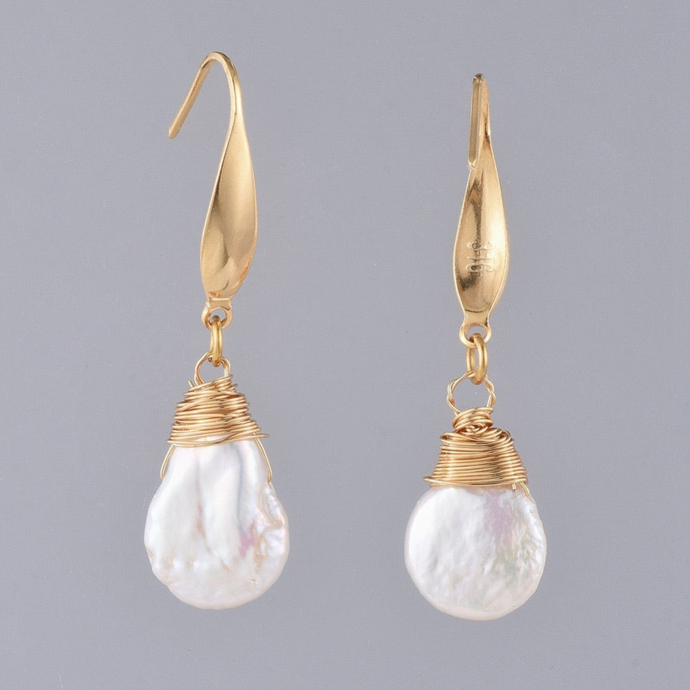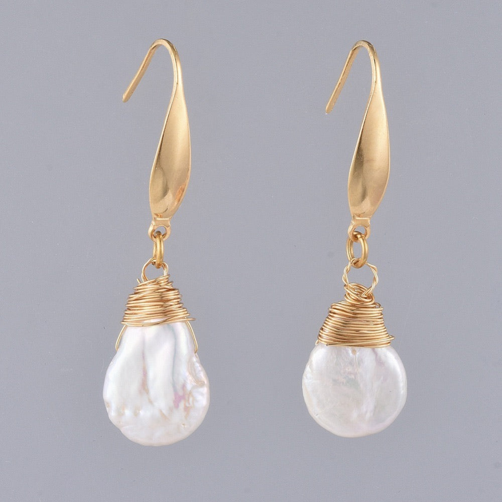 Natural Baroque Pearl Keshi Pearl Dangle Earrings to match any of our VWTC NECKLACES, Made with Brass Findings, 316 Stainless Steel Earring Hooks Teardrop, White
