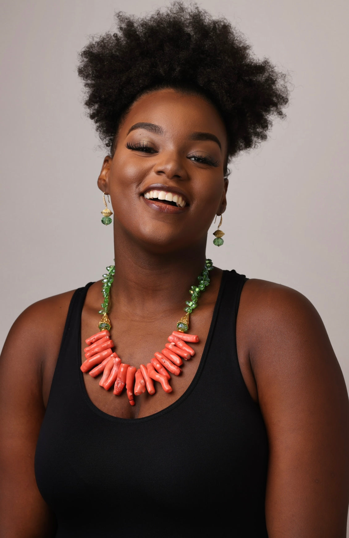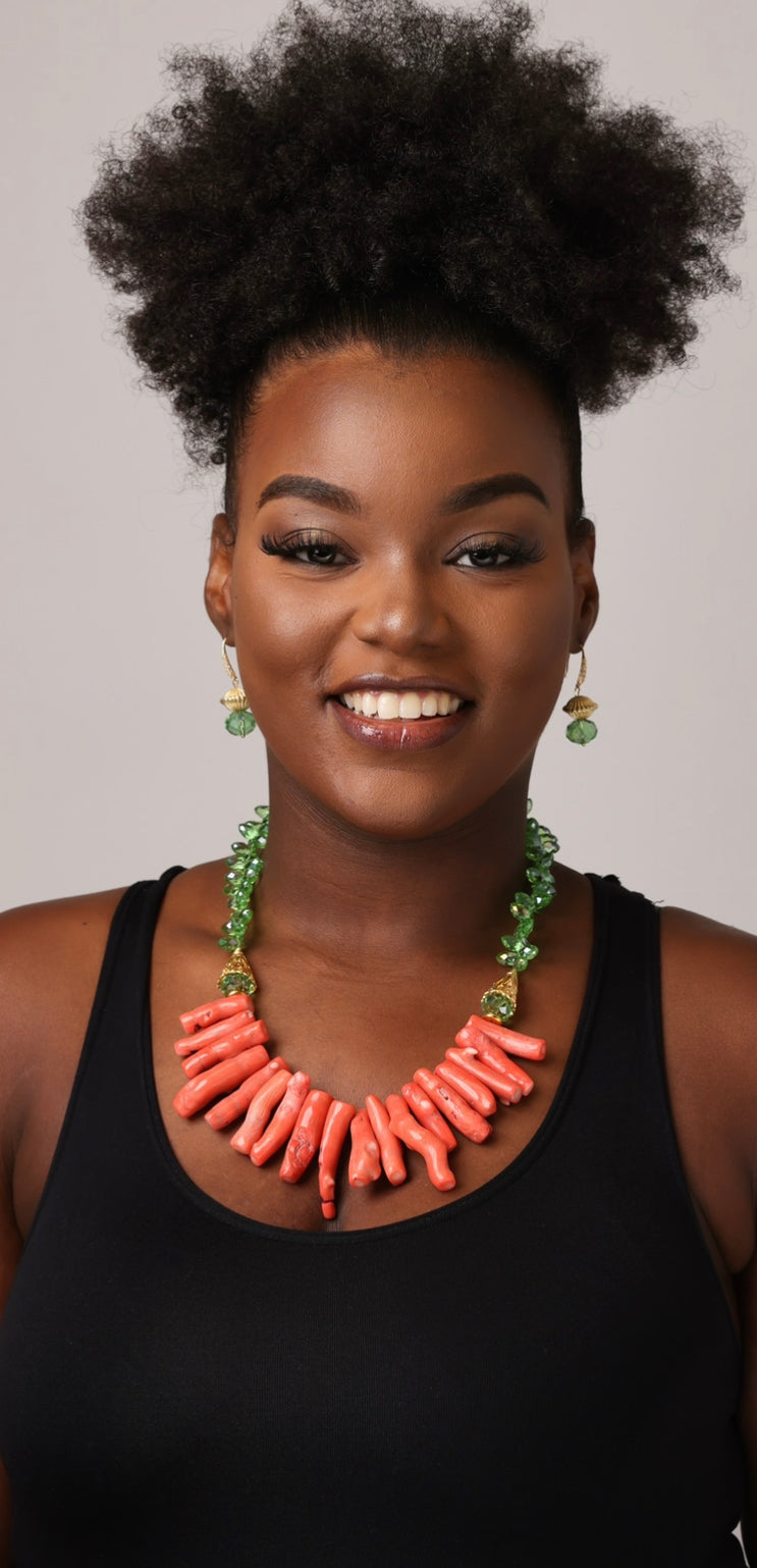 Coral Crystal Quartz, Coral 24k findings and stainless steel